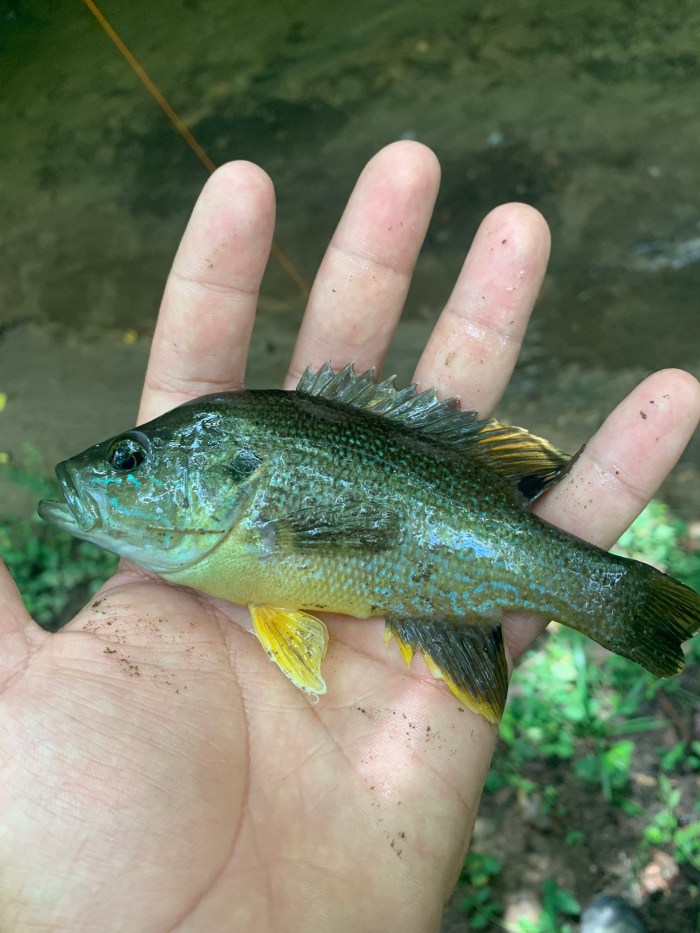 The Fish: Native Green Sunfish. They are vicious predators, territorial, and they were in the mood to eat.