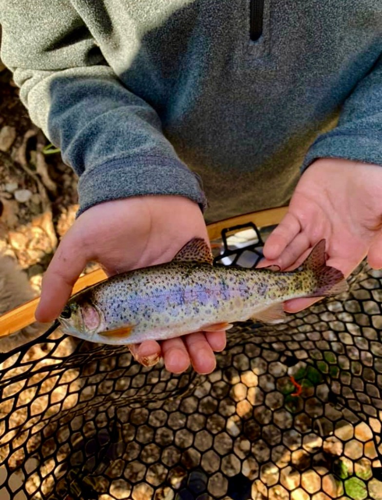 3- Teach your kids best practices for releasing fish unharmed. You can learn more about it here. (I know many of these pictures are not best handling practices, but that was before I knew better). I would only add that if you are going to handle the fish, let the fish sit in the net in the water for a couple minutes and breathe before taking it out of the water. Think of going to the finish line of the 100m race in the olympics, going up to the winner, then putting a plastic bag on their head so that they can’t breathe, When you land a trout, the fish is exhausted and starved of oxygen. You don’t want to immediately cut off its oxygen supply by lifting it out of the water.