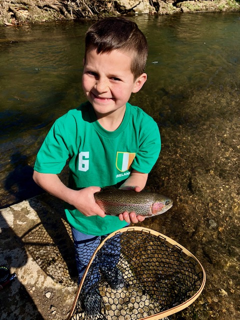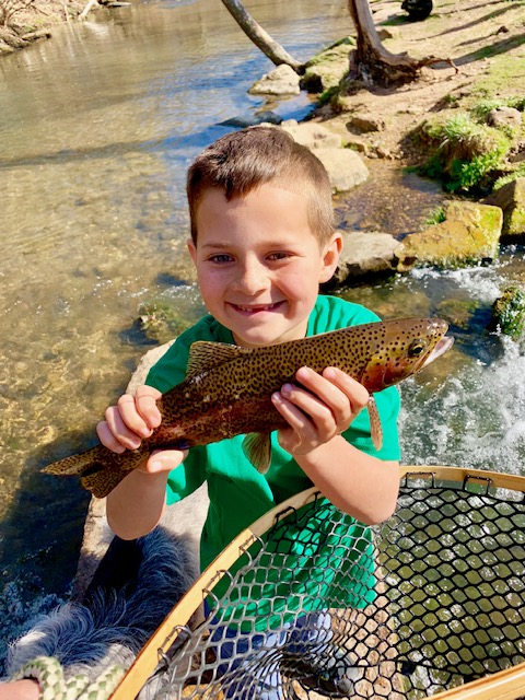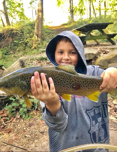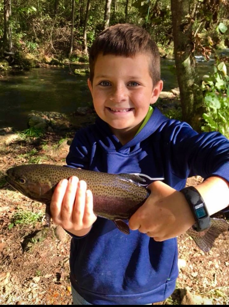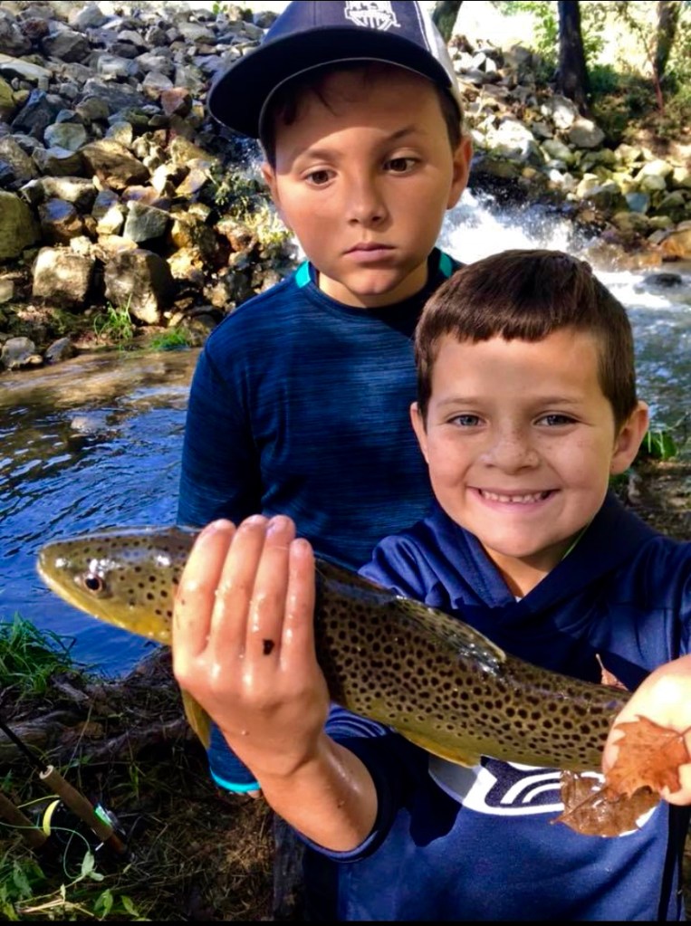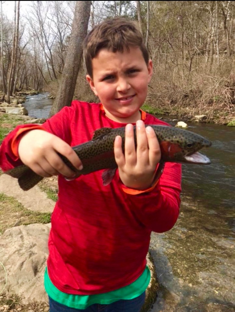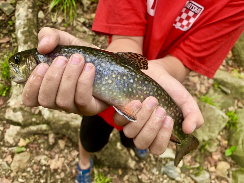 Imagine this: After a few hours of fishing and quite a few fish, your oldest son (age 9) tells you that he has hooked another fish. He says that it is small and that he doesn’t need any help. The fish jumps a few times. It is a small rainbow trout, probably about 4 to 5 inches. At this point, he’s well versed in catching and releasing small fish, so you return to your thoughts. Just as you are pondering if a 4 inch rainbow was stocked in this creek (why would anyone stock a fish that small?) or maybe this fish is the product of natural reproduction. He tells you “Dad, I’m stuck on something”. You look up, seeing the line stationary in the water. Then you see the line start to move. He’s not stuck, he has somehow hooked into a giant fish. You jump up, grab the net, adjust the drag on the reel, tell him to keep his rod tip high, and tell him to relax. I like to tell my kids it takes about 10 minutes to get a large trout in (this is untrue, but it gets them to slow down). Then we both see it. I have been trout fishing for 20 years, and this is the largest brown trout I have ever seen, with the small fish he originally caught inside the giant mouth of the brown trout. Your kid keeps yelling out “Epic!!”. He brings the fish close to you, but just barely out of reach. You know that the giant fish is probably barely hooked, and you know that you don’t get many chances to net a fish like this, so you decide to go for it. You completely miss. The giant fish makes one final run, and breaks off. Your kid is mad that you missed it with the net. Realistically, that was probably the fish of a lifetime for him. Although I was not the one fishing, it may have been the best fishing story of my lifetime. Secretly, you are glad that the fish got away, because who wants their kid to catch the fish of a lifetime at age 9?